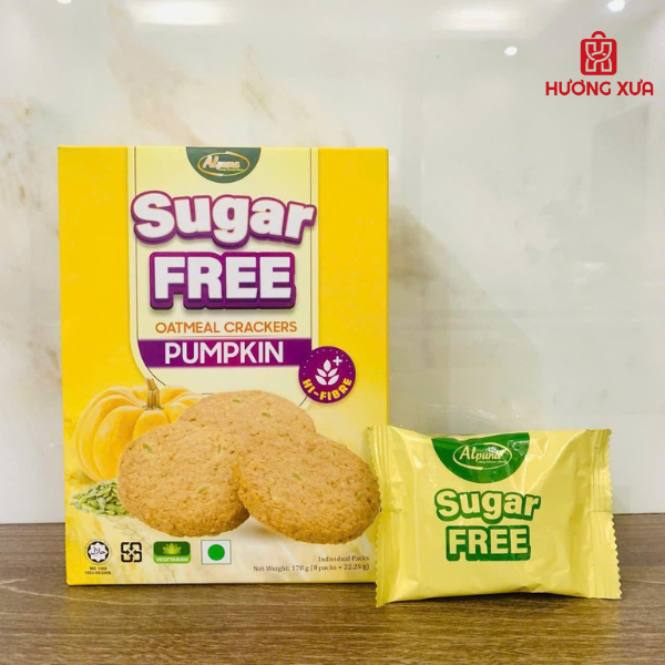 Bánh quy không đường yến mạch bí ngô Alpuna 178g – giòn tan, ngọt nhẹ, giàu chất xơ & hạt bí. Phù hợp người ăn kiêng, tiểu đường. Mua chính hãng tại Hương Xưa Mart.