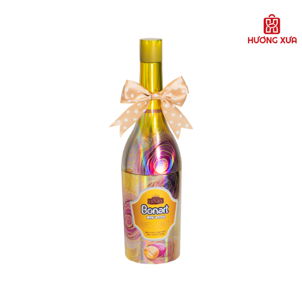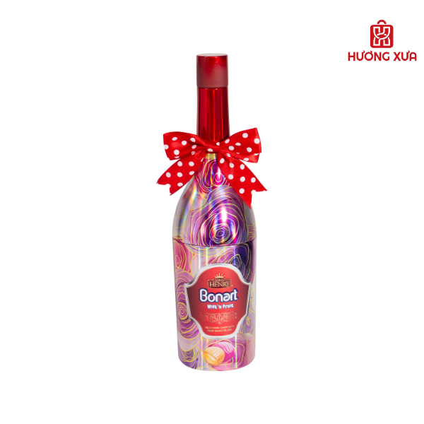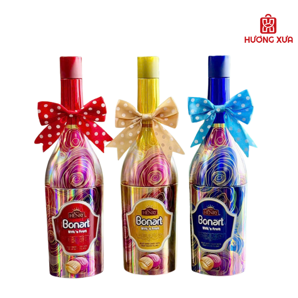 Kẹo cứng sữa trái cây Bonart với nhân sốt trái cây mềm mịn là sự hòa quyện hoàn hảo giữa vị ngọt béo của sữa và hương thơm tự nhiên từ các loại trái cây như: anh đào, táo , dâu, dứa, xoài, chanh dây... Thiết kế hộp chai rượu sang trọng, ấn tượng, không chỉ là món quà nhỏ tinh tế mà còn mang đến trải nghiệm thưởng thức mới lạ cho mọi lứa tuổi. Từng viên kẹo khi tan chảy trong miệng để lại hậu vị ngọt ngào, vừa thoải mái vừa thú vị.