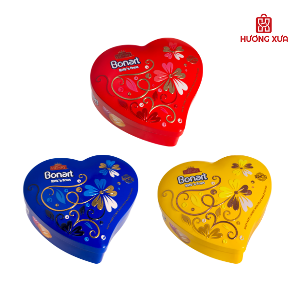 Kẹo cứng sữa trái cây Bonart với nhân sốt trái cây mềm mịn là sự hòa quyện hoàn hảo giữa vị ngọt béo của sữa và hương thơm tự nhiên từ các loại trái cây như: anh đào, táo , dâu, dứa, xoài, chanh dây... Thiết kế hộp trái tim sang trọng, ấn tượng, không chỉ là món quà nhỏ tinh tế mà còn mang đến trải nghiệm thưởng thức mới lạ cho mọi lứa tuổi. Từng viên kẹo khi tan chảy trong miệng để lại hậu vị ngọt ngào, vừa thoải mái vừa thú vị.