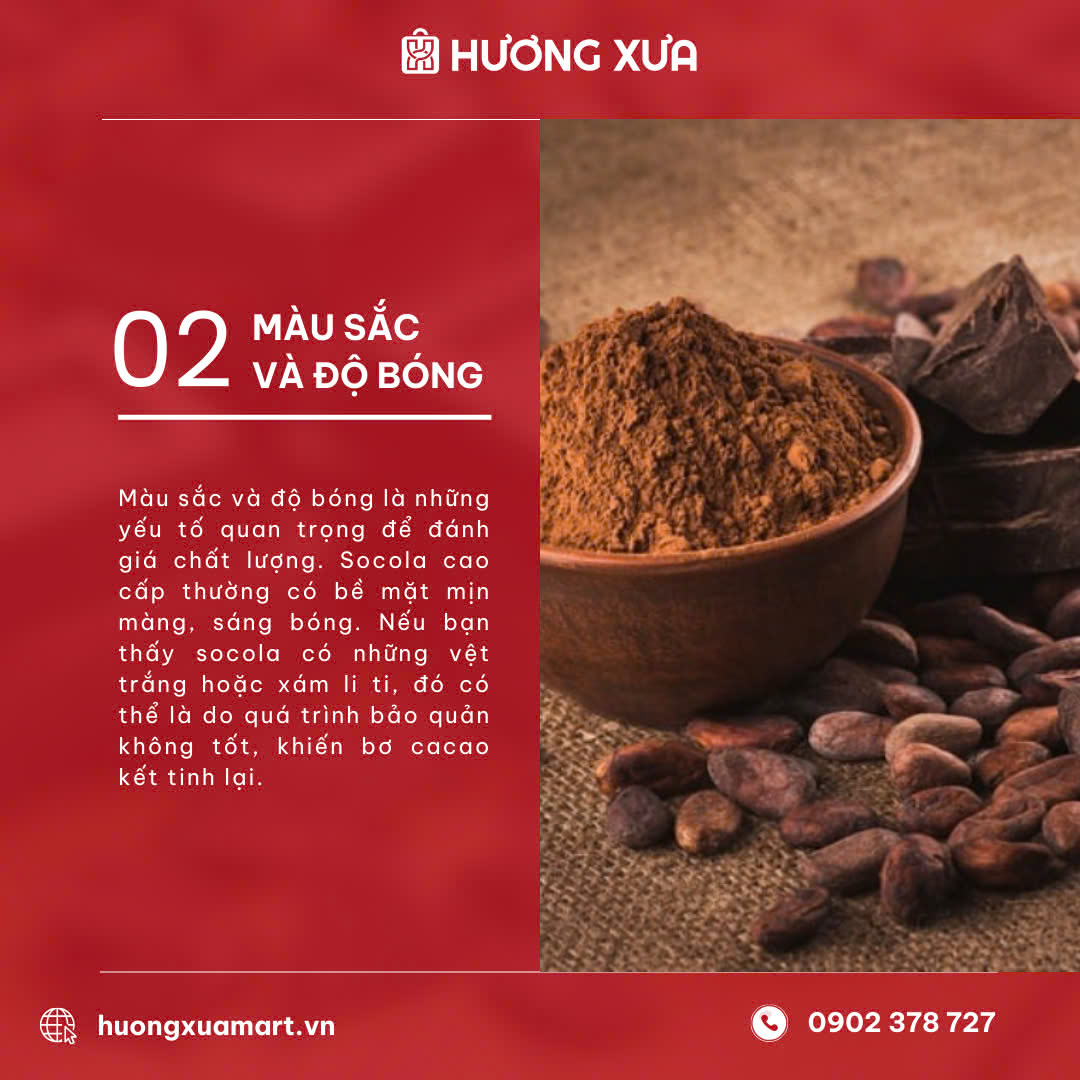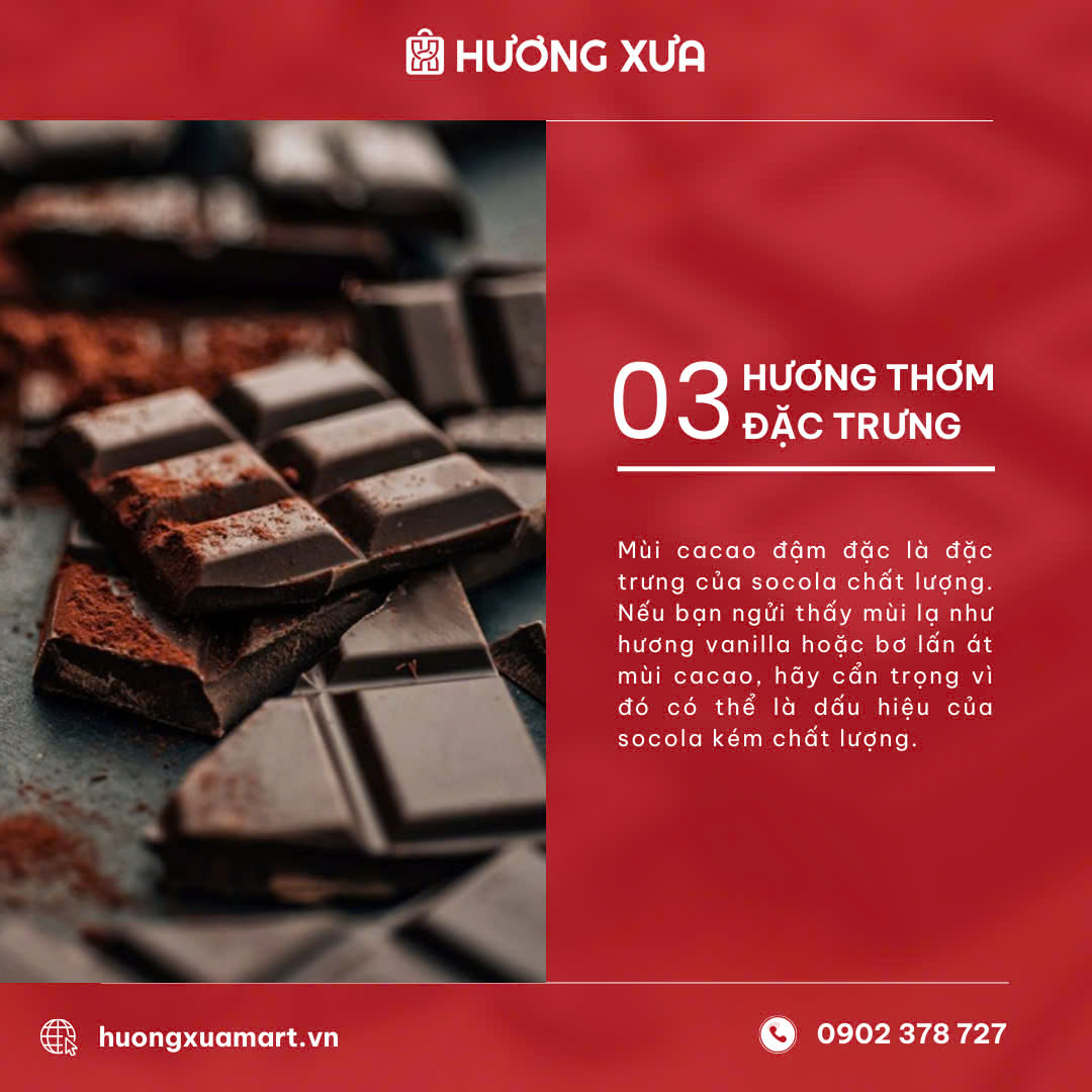 Socola từ lâu đã trở thành biểu tượng của sự ngọt ngào, quyến rũ và sang trọng. Không chỉ là món ăn yêu thích của mọi lứa tuổi, socola còn mang đến nhiều giá trị dinh dưỡng tuyệt vời nếu bạn chọn đúng sản phẩm. Tuy nhiên, giữa vô số loại socola trên thị trường, làm sao để bạn phân biệt được đâu là socola chất lượng cao? Hãy cùng Hương Xưa Mart khám phá những tiêu chí vàng để nhận biết socola cao cấp và chọn lựa sản phẩm tốt nhất cho sức khỏe và trải nghiệm vị giác của bạn!