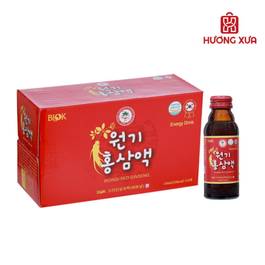 Nước Hồng Sâm WONGI RED GINSENG Hộp 10 chai là sự kết hợp tinh túy giữa hồng sâm Hàn Quốc 6 năm tuổi và các dưỡng chất quý giá khác, mang đến sản phẩm bổ dưỡng tuyệt vời cho sức khỏe. Với hương vị đậm đà, thơm ngon, đây là sự lựa chọn hoàn hảo để bù đắp năng lượng và tăng cường sức đề kháng cho cơ thể.