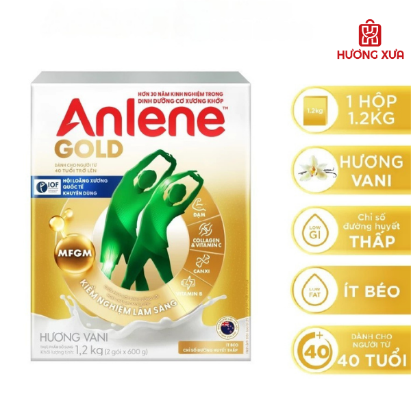 Sữa bột Anlene Gold hương vani hộp 1.2kg là sữa bột dinh dưỡng thế hệ mới dành cho người trưởng thành, đặc biệt từ 40 tuổi trở lên – độ tuổi bắt đầu xuất hiện dấu hiệu suy giảm sức mạnh cơ, đau nhức xương khớp và thiếu linh hoạt trong vận động.