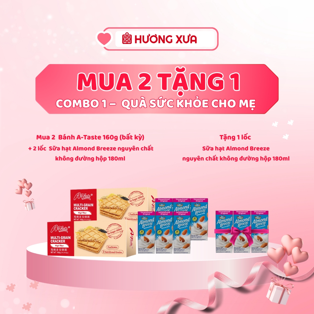 👉 Mua 2 Bánh A-Taste 160g (bất kỳ) + 2 lốc Sữa hạt Almond Breeze nguyên chất không đường hộp 180ml