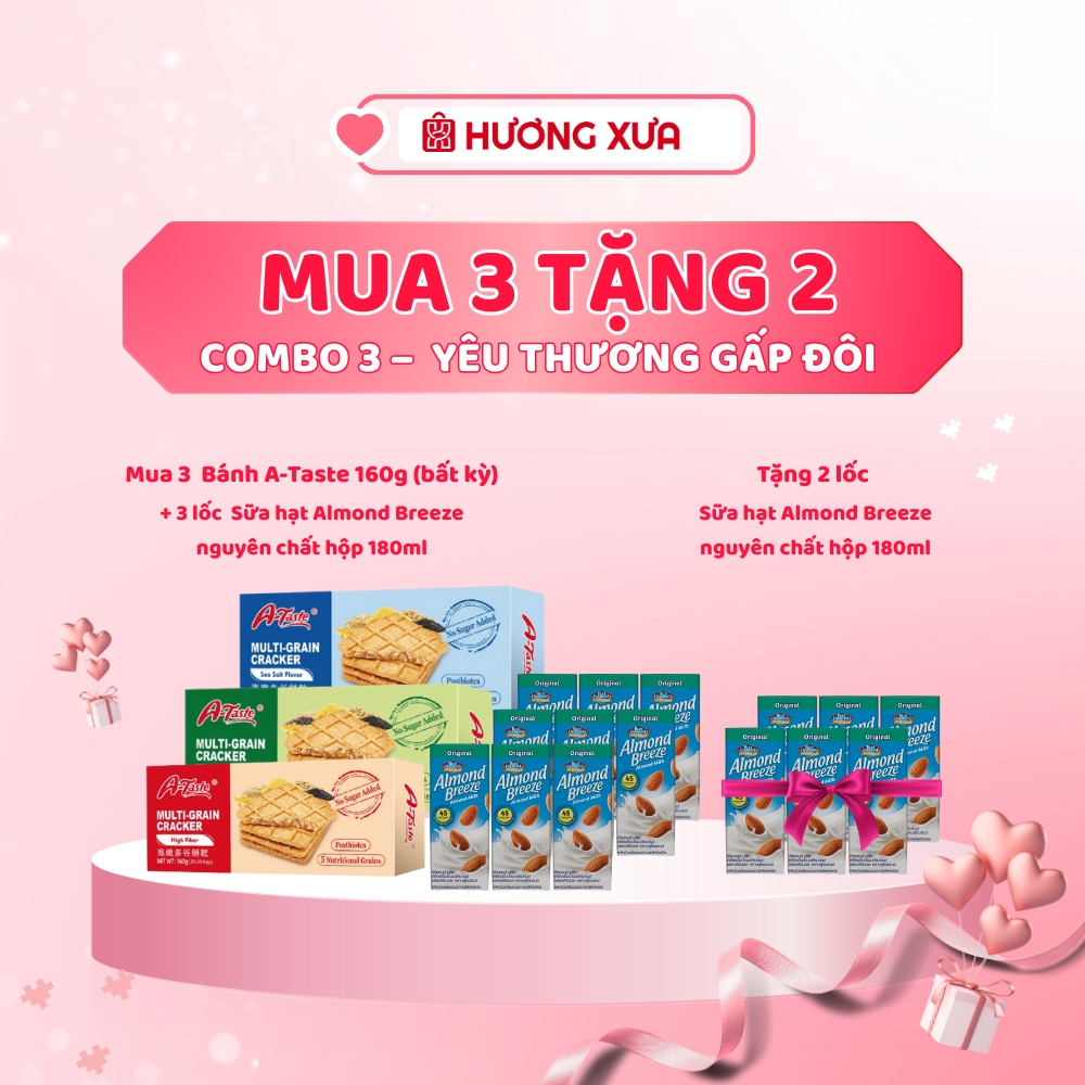 👉 Mua 3 Bánh A-Taste 160g (bất kỳ) + 3 lốc Sữa hạt Almond Breeze nguyên chất hộp 180ml